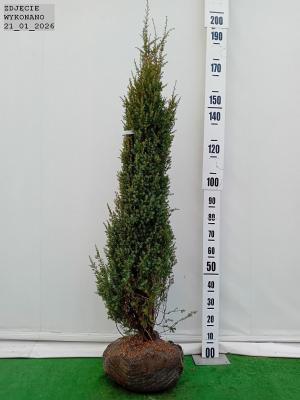 Zimozielony. wąskokolumnowy jałowiec o dość powolnym wzroście. Ozdobny w pionowo ustawione pędy i kłujące. stalowozielone igły. Wzrost w wieku 10 lat do 1.5 m wysokości. Idealny na skalniaki i wrzosowiska oraz na cmentarze.