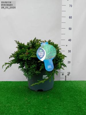 Zimozielony. niski i wolnorosnący jałowiec o pełzających pędach. Ozdobny w zielononiebieskie. krótkie igły. Wzrost do 0.2 m wysokości przy 1.5 m średnicy. Plecany na skalniaki. a w formie szczepionej na balkony i tarasy.