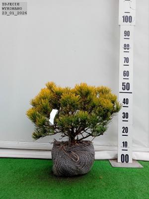 Karłowa sosna kosodrzewina o zwartym krzaczastym pokroju i wzniesionych końcówkach pędów. Po 10 latach dorasta do 0.75 m wyskości i szerokości. Posiada podwójne igły. latem jasnozielone a po jesiennych przymrozkach pomarańczowozłote. Takie wybarwienie poj