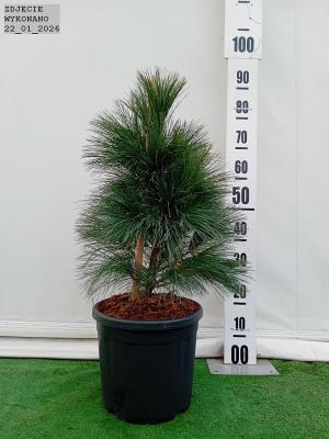 Wolnorosnąca sosna o zwartym. szerokostożkowym pokroju i długich srebrzystoniebieskich igłach. Po 10 latach dorasta do 1.5 m wysokości i 1 m szerokości. Posiada bardzo zagęszczone pędy i miękkie. dwukolorowe. przewieszające się igły. Dodatkową ozdobą są b
