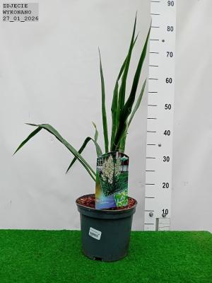 Zimozielona juka karolińska o sztywnych. mieczowatych liściach. zebranych w gęste kępy. dorastająca do 0.7 m wysokości. Ozdobna w osadzone na długich pędach kwiatostany. składające się z bardzo licznych. kremowych. dzwonkowatych. zwisających kwiatów. Pole