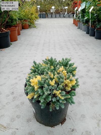 karłowa. kulista odmiana dorasta do 0.5 m wys. pędy niebieskie z żółtymi upstrzeniami