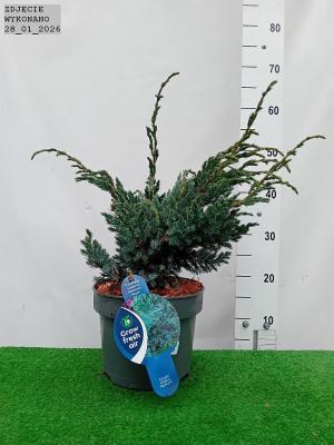 Zimozielony jałowiec o krzaczastym pokroju. Ozdobny w srebrzystoniebieskie. gęsto osadzone igły oraz skośnie ustawione główne pędy z lekko przewisającymi końcami. Wzrost do 1 m wysokości. Polecany do sadzenia w grupach lub pojedynczo.