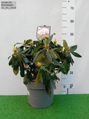 Zimozielony różanecznik jakuszimański z rodziny wrzosowatych o dość zwartym pokroju. Charakterystyczne dla gatunku są ciemnozielone. czasem szarozielone liście. z wierzchu błyszczące oraz barwne lejkowate kwiaty. zebrane w kuliste kwiatostany. Polecany do