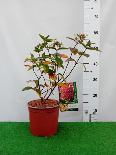 bardzo oryginalna odmiana o zmieniających wielokolorowych kwiatostanach pojawiające się kolory to biały. kremowy. różowy. zielony. czerwony