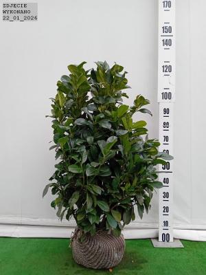 Zimozielona laurowiśnia wschodnia o wzniesionych pędach. Wzrost do 1.5 m wysokości. Posiada ciemnozielone. błyszczące. duże. szerokojajowate liście. Ozdobna w drobne. pachnące. białe kwiaty. zebrane w wyprostowane grona. a następnie małe. kuliste. czarne