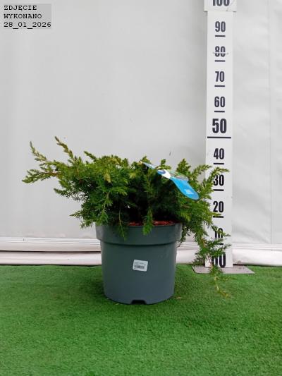 Zimozielony. wolnorosnący jałowiec o rozłożystej formie. Ozdobny w długie. kłujące i intensywnie zielone igły. Wzrost do 0.2 m wysokości przy 1 m średnicy. Polecany na skalniaki i do alpinariów jako roślina okrywowa.