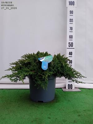 Zimozielony. niski i wolnorosnący jałowiec o pełzających pędach. Ozdobny w zielononiebieskie. krótkie igły. Wzrost do 0.2 m wysokości przy 1.5 m średnicy. Plecany na skalniaki. a w formie szczepionej na balkony i tarasy.