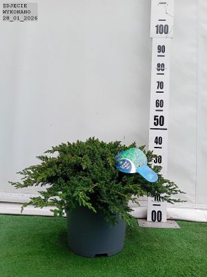 Zimozielony. niski i wolnorosnący jałowiec o pełzających pędach. Ozdobny w zielononiebieskie. krótkie igły. Wzrost do 0.2 m wysokości przy 1.5 m średnicy. Plecany na skalniaki. a w formie szczepionej na balkony i tarasy.