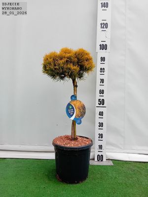Karłowa sosna kosodrzewina o zwartym krzaczastym pokroju i wzniesionych końcówkach pędów. Po 10 latach dorasta do 0.75 m wyskości i szerokości. Posiada podwójne igły. latem jasnozielone a po jesiennych przymrozkach pomarańczowozłote. Takie wybarwienie poj