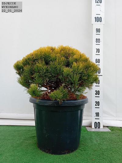 Karłowa sosna kosodrzewina o zwartym krzaczastym pokroju i wzniesionych końcówkach pędów. Po 10 latach dorasta do 0.75 m wyskości i szerokości. Posiada podwójne igły. latem jasnozielone a po jesiennych przymrozkach pomarańczowozłote. Takie wybarwienie poj
