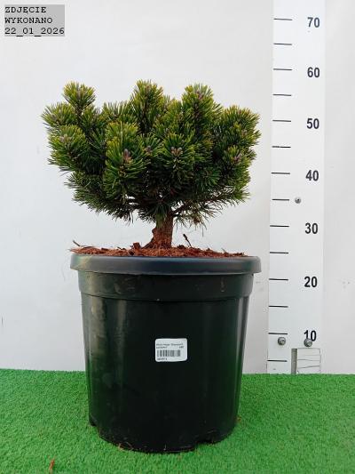 Karłowa sosna kosodrzewina o zwartym. kulistym pokroju. Posiada krótkie. ciemnozielone i błyszczące igły. Nadaje się na skalniaki i do ogrodów przydomowych.