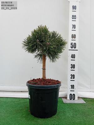 Wolnorosnąca sosna o zwartym. szerokostożkowym pokroju i długich srebrzystoniebieskich igłach. Po 10 latach dorasta do 1.5 m wysokości i 1 m szerokości. Posiada bardzo zagęszczone pędy i miękkie. dwukolorowe. przewieszające się igły. Dodatkową ozdobą są b
