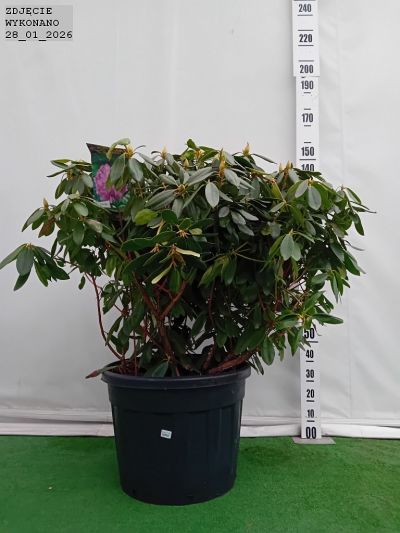 "Zimozielony różanecznik z rodziny wrzosowatych o zwartym pokroju przez cały okres wzrostu. charakteryzujący się ciemnozielonymi. skórzastymi liśćmi. Ozdobą różaneczników są przede wszystkim kwiaty. zebrane w obfite. wielobarwne kwiatostany na szczytach p