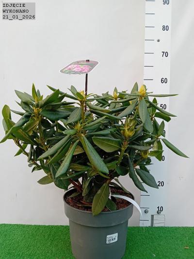 "Zimozielony różanecznik z rodziny wrzosowatych o zwartym pokroju przez cały okres wzrostu. charakteryzujący się ciemnozielonymi. skórzastymi liśćmi. Ozdobą różaneczników są przede wszystkim kwiaty. zebrane w obfite. wielobarwne kwiatostany na szczytach p